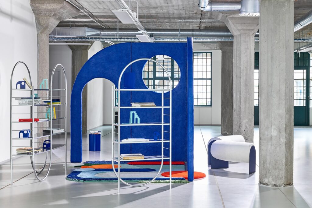 Beautiful books deserve beautiful bookshelves – here provided by Monotropa, and of course, a cozy place to snuggle with a book: a tufted rug by Masopust or a cushy bench designed by Lexová & Smetana (produced by Polstrin).